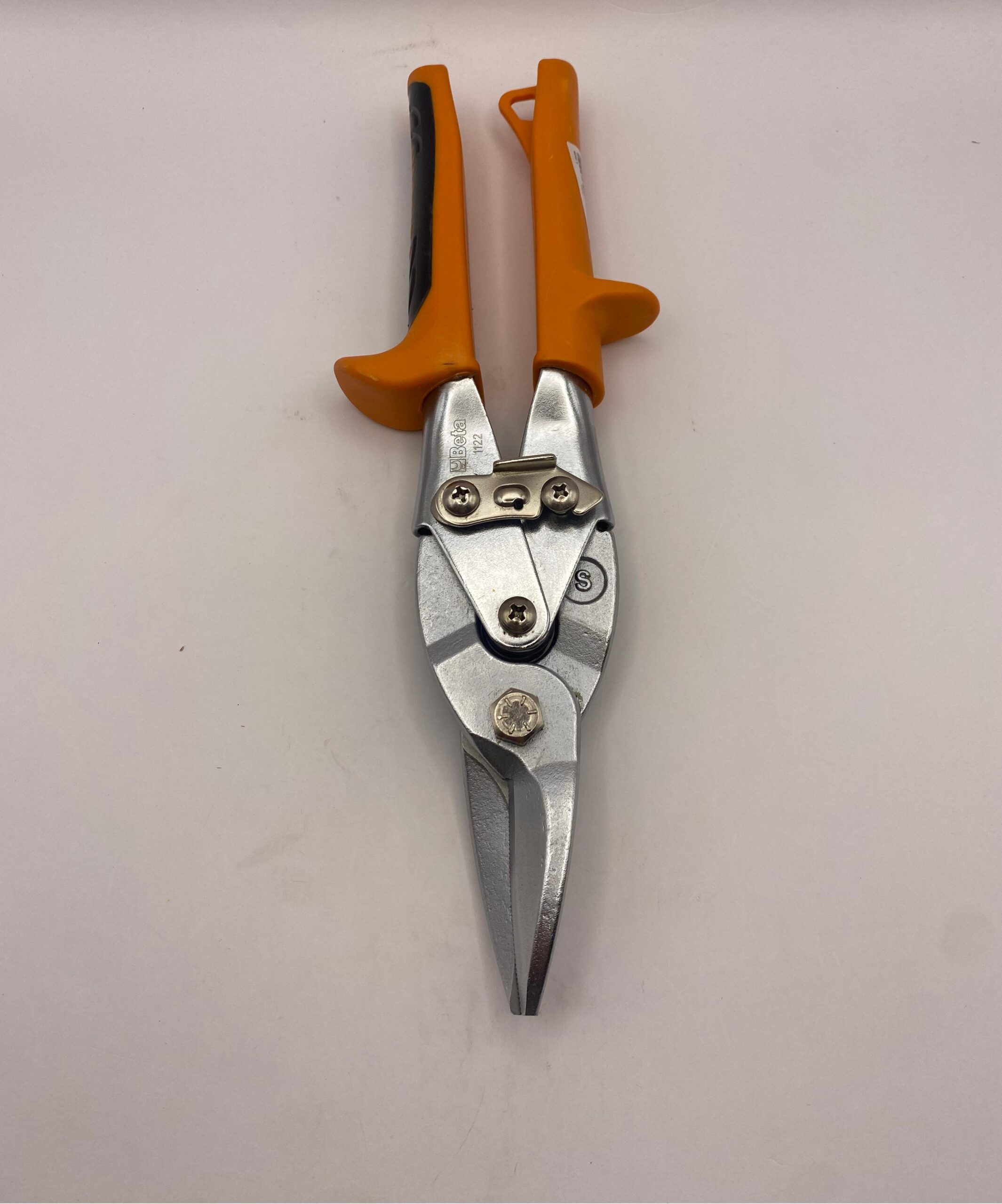 Di grande maneggevolezza e ottima capacità di taglio, è adatta per tagli dritti non passanti. Lame con leggera dentatura per una migliore presa sulla lamiera. Dotata di molla di richiamo e levetta per il bloccaggio.